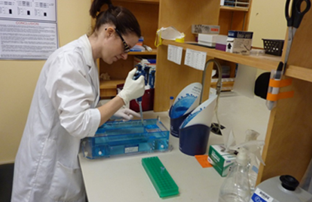 Geneviève a obtenu son diplôme d’études collégiales en Techniques de laboratoire en biotechnologies en 2002. Suite à son stage de fin d’études à l’Université du Québec à Trois-Rivières au laboratoire de neurobiologie cellulaire du Dr Maria-Grazia Martinoli, elle a poursuivi ses études au baccalauréat en biochimie et biotechnologies conjointement à son travail avec l’équipe de recherche du Dr Martinoli.